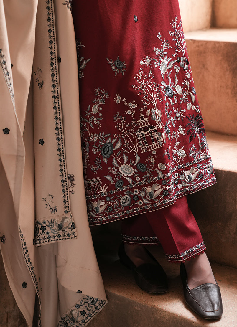 Embroidered khaddar back