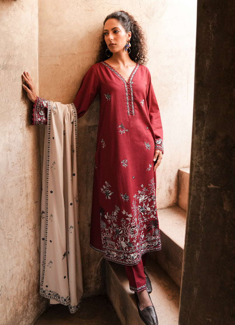 Embroidered Khaddar Trouser