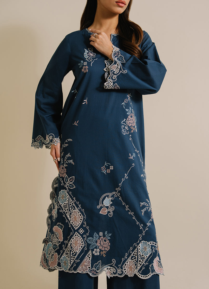 The Blue Cotton Embroidered Co-ord Set from our Image Signature category features a round neckline with a slit & full-length bell sleeves paired with embroidered trousers.