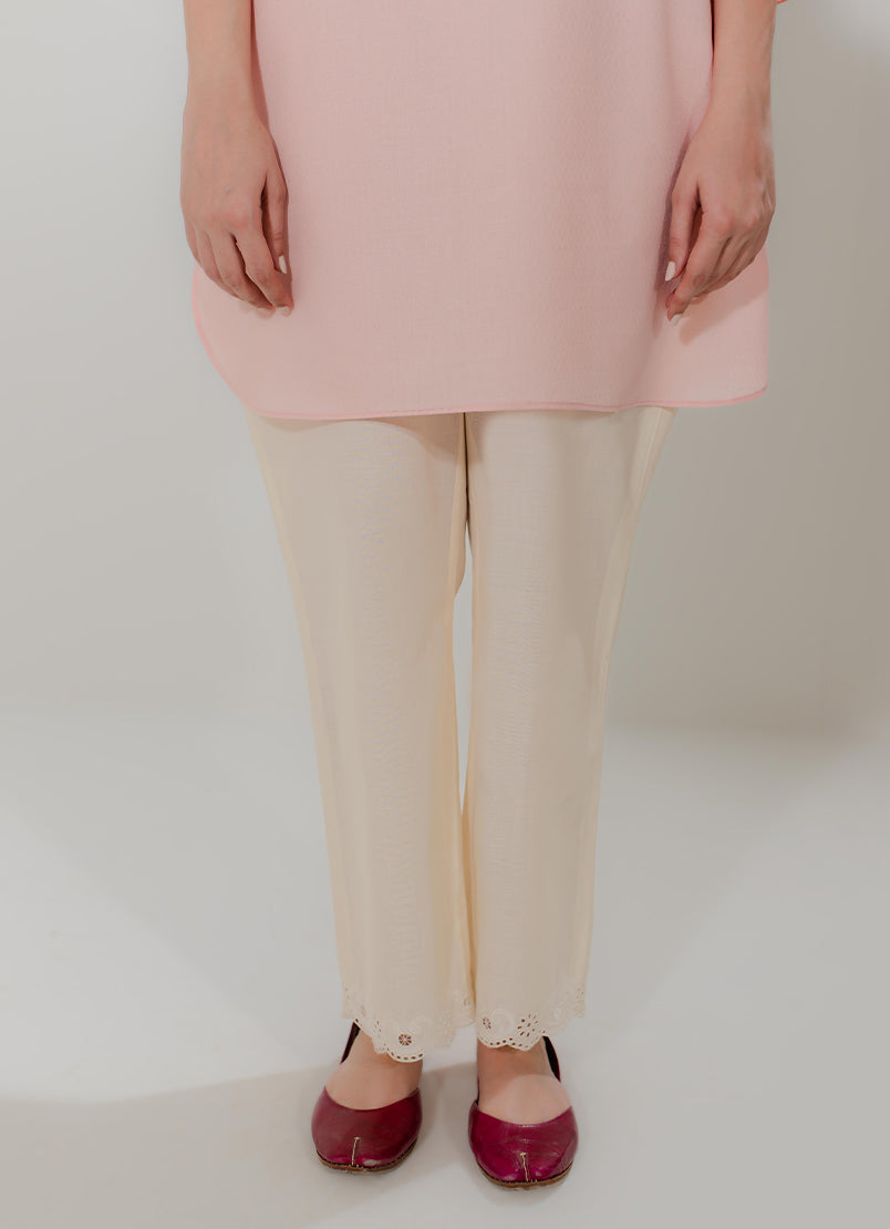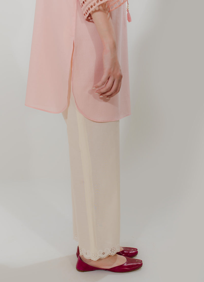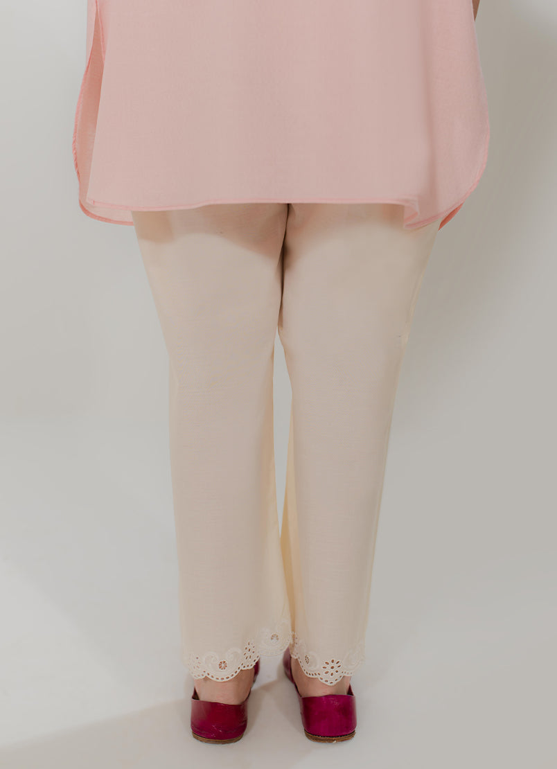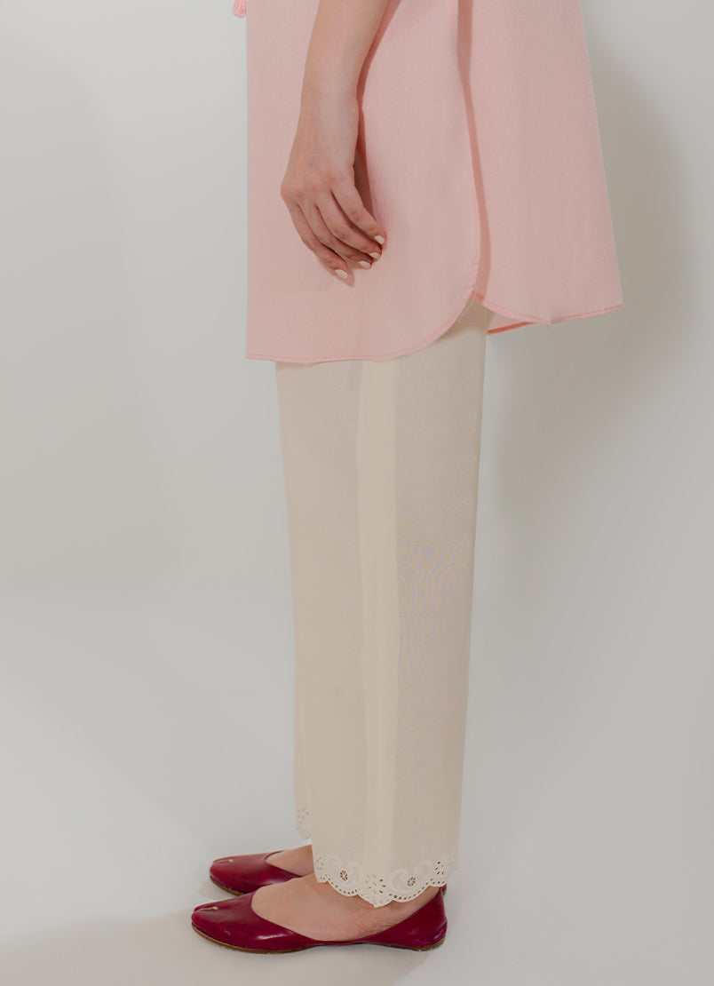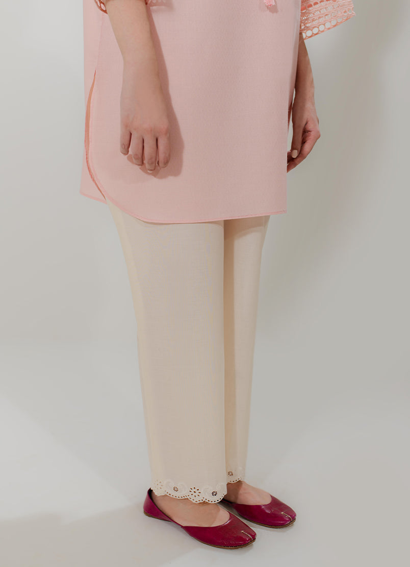 The Ivory Embroidered Izaar from Spring Pret '25 Collection features a straight fit & scallop cutwork embroidery.