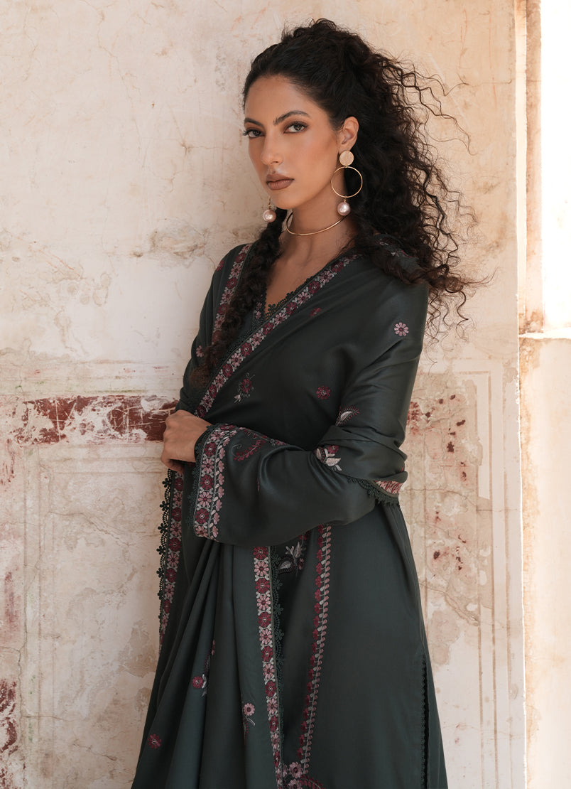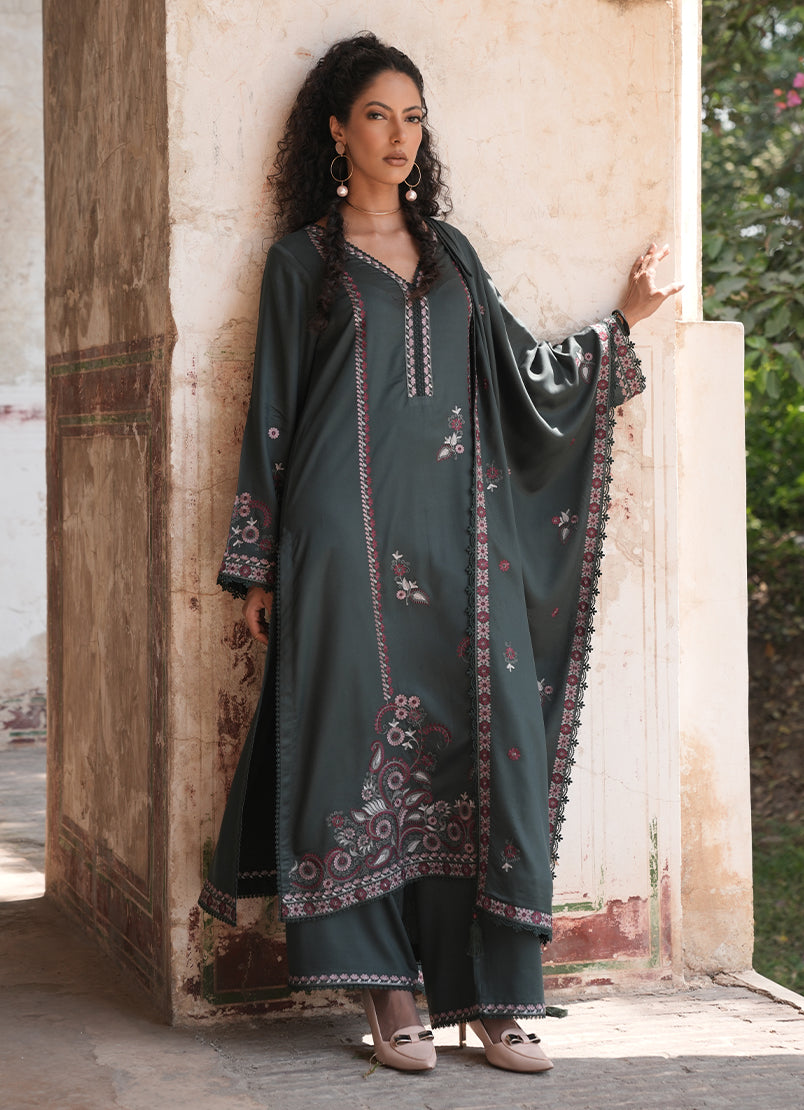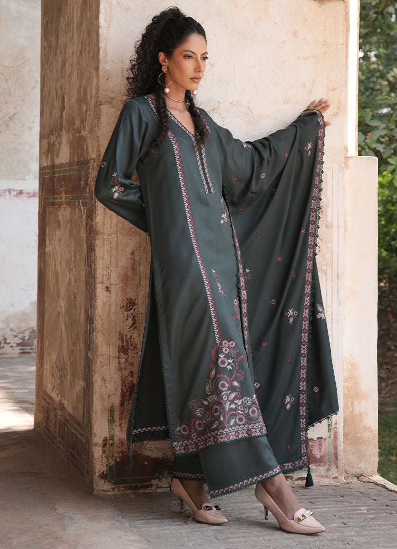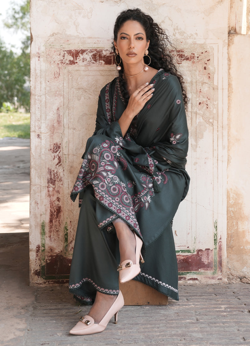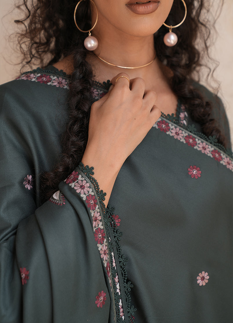 Embroidered Twill Viscose Dupatta With Embroidered Pallu Border