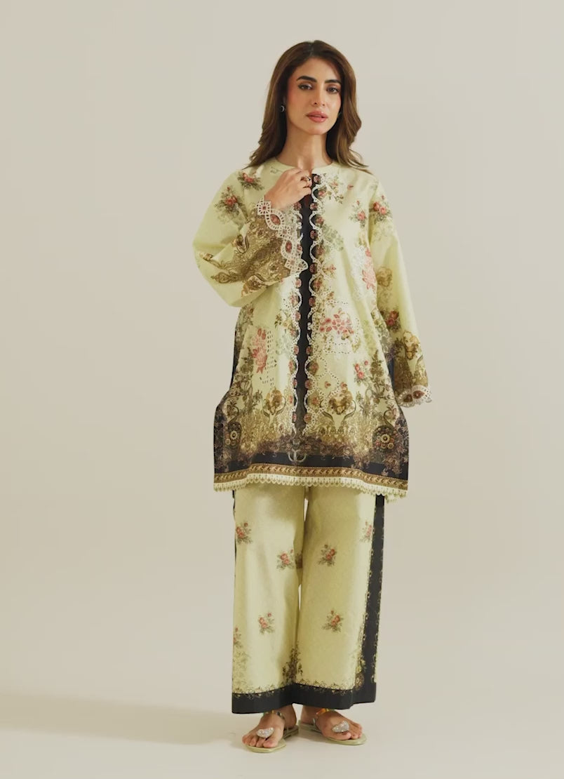 The Cream Cotton Embroidered Co-ord Set from our IM Print category features round neckline with a slit & full-length bell sleeves paired with straight trousers.