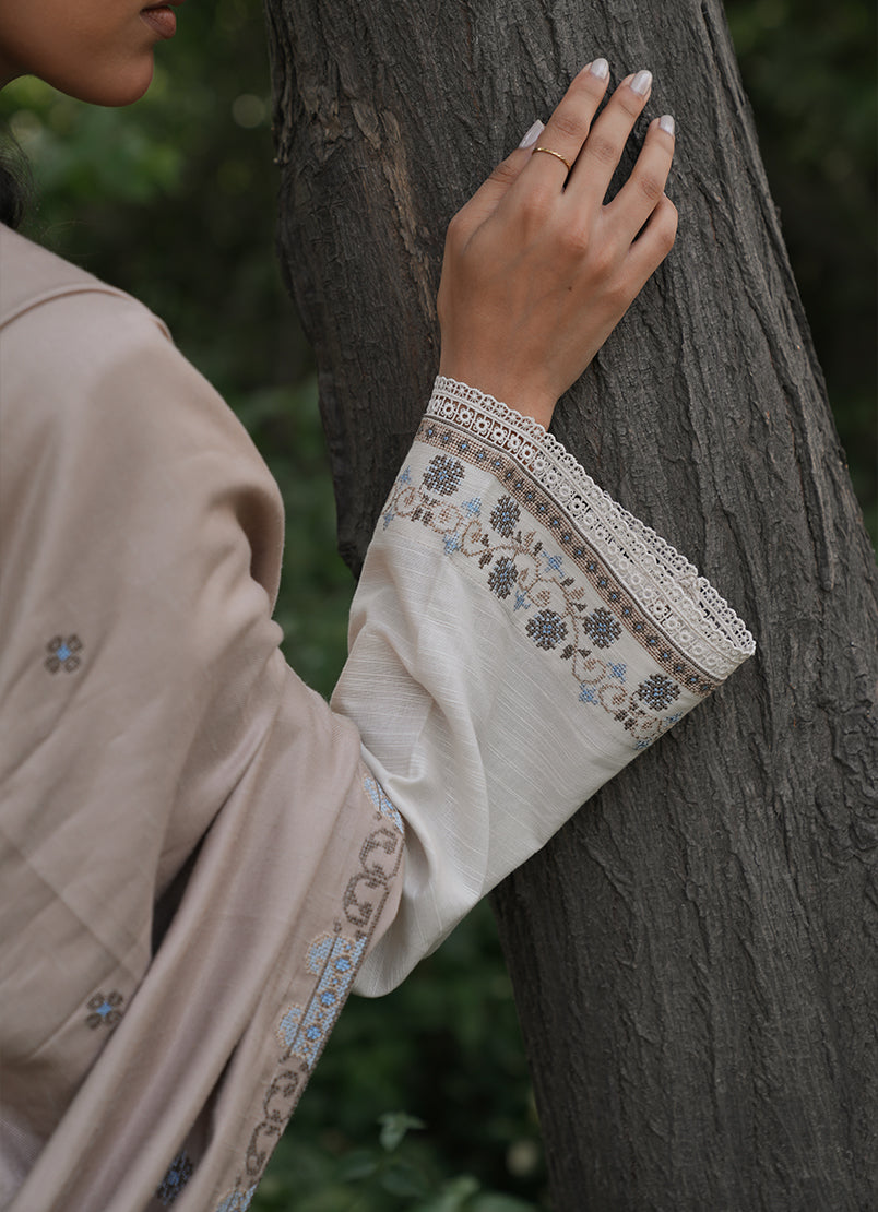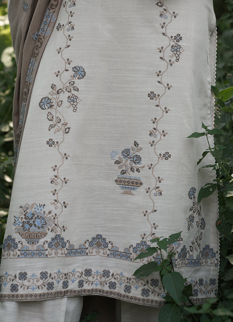 Embroidered Acrylic Shawl With Embroidered Pallu Border