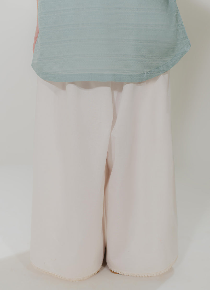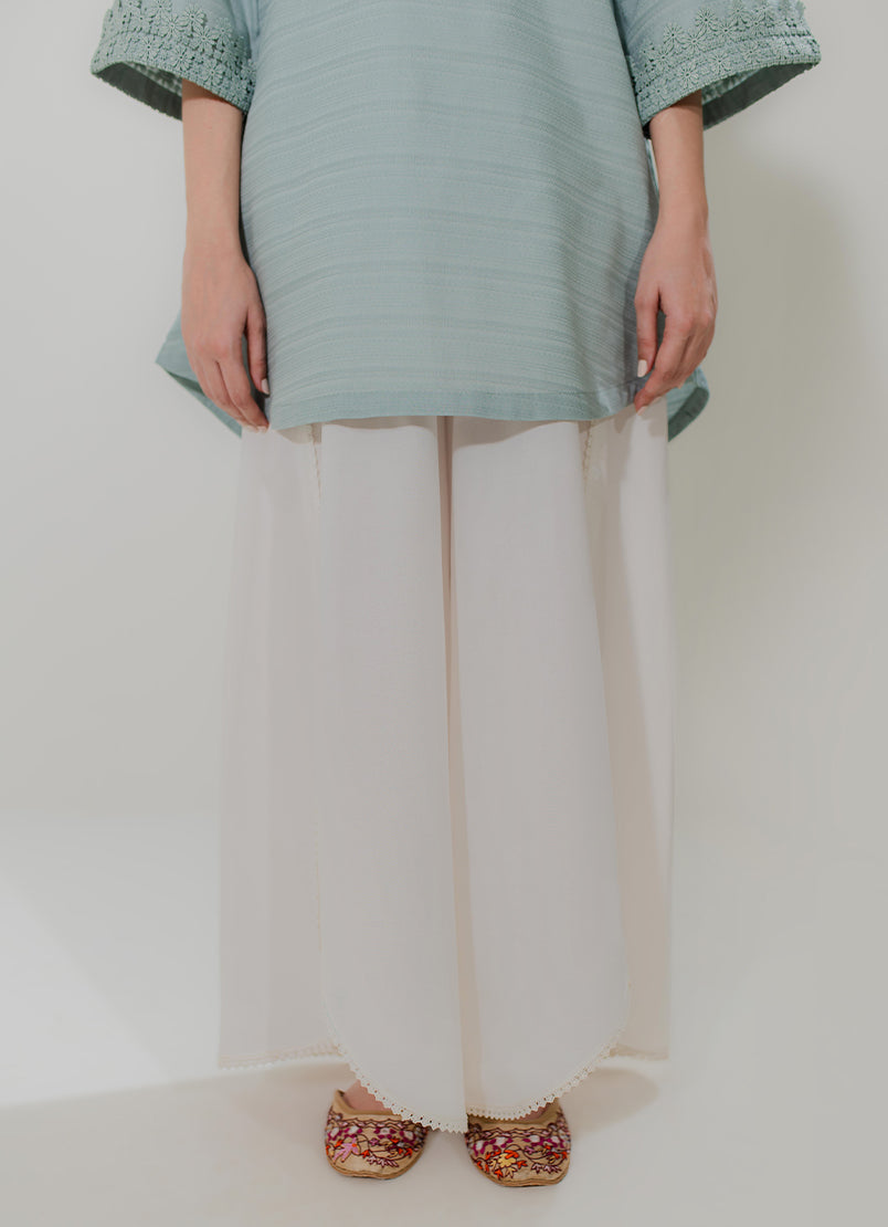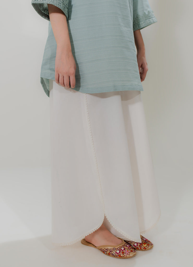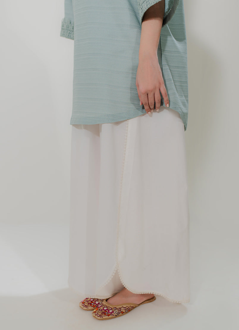 The White Cotton Tulip Izaar from Spring Pret '25 Collection. Featuring straight fit with lace embellishment.